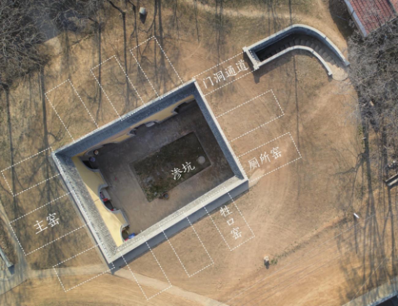 此外,黄土的隔热和储热性能相对均衡,住在地坑院的窑洞里就如同盖上了一张会调节呼吸的恒温被。冬暖夏凉、经济实惠是地坑院至今依然深受当地老百姓喜爱的重要原因。当大片房屋建筑都在地平面以下,“见树不见村,闻声不见人”的奇观便呈现在眼前。不同地区的地坑院建筑形式相同,建筑尺度和细节设计则因地制宜。本篇聚焦河南省西部三门峡市陕州区的地坑院。