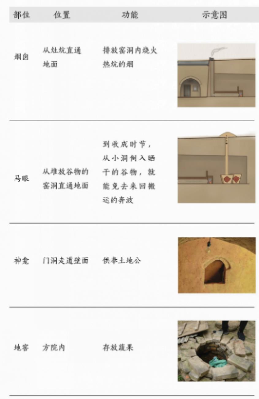 地坑院在满足安全的基本需求后,也进行了功能性改良。窑洞的采光普遍较差,如果将窗户的角度调整为稍稍上仰,就能增加采光面积,同时,让门框稍稍前扑,与窗户下端自然贴合,就能减少门的晃动。