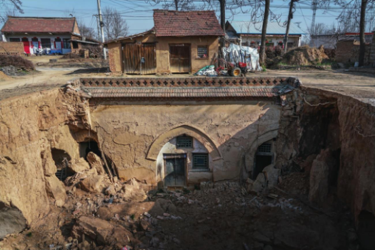 扎根于黄土的地坑院,如同一位沉默的历史记录者,它的命运与中原大地的社会变迁同频共振。20世纪70年代,由于地坑院占地面积大,房顶土地无法开垦种植,出于农业发展的考量,政策不允许新建地坑院。同时,伴随20世纪90年代社会经济发展,居住在黄土之下的人们纷纷走到地平面上盖起了小砖房,大多数村落出现了地上平房与地下院落并存的局面。自2017年乡村振兴政策实行,政府开始出资协助村民维修改造部分地坑院,曾经离家的中青年纷纷归来。异乡的生活经历让他们更坚定地坑院才是自己独一无二的黄土印记、身份归属。他们在自家院子里发展文旅事业,尝试用现代技术完善传统地坑院的问题。