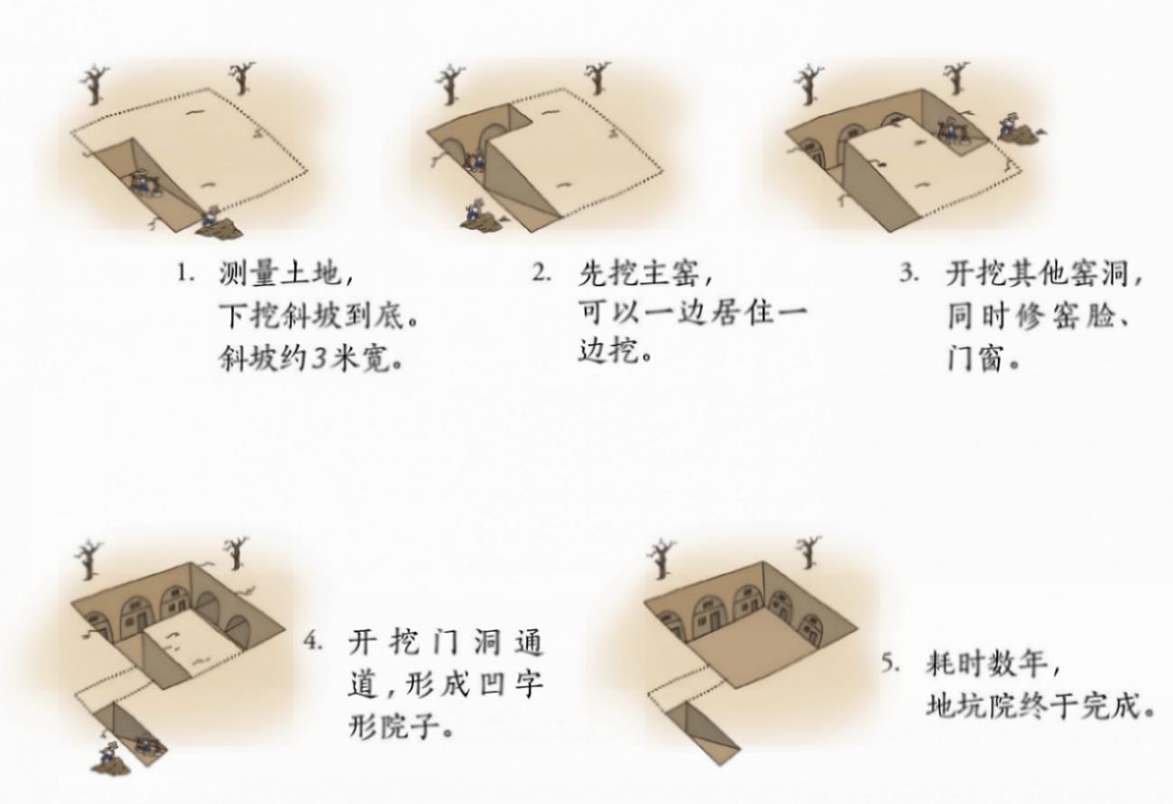 一座纯黄土构造的地坑院到这一步就基本完成了建造。其他生活细节上的设计,都是随着居住经验增长而逐步探索出来的。