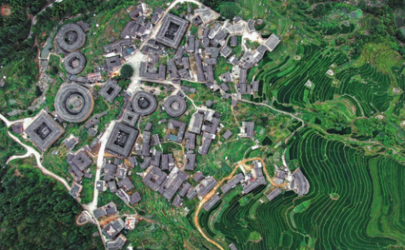 湿暖的季风从东海进入福建省,掠过海边仅有的一点平原地带后,便被绵延起伏的丘陵层层阻隔。武夷、戴云、鹫峰三道绵长的山脉分列于福建境内,塑造了福建“八山一水一分田”的格局。在闽西南地区的群山间,或圆或方的土楼星罗棋布,升腾着万家烟火。