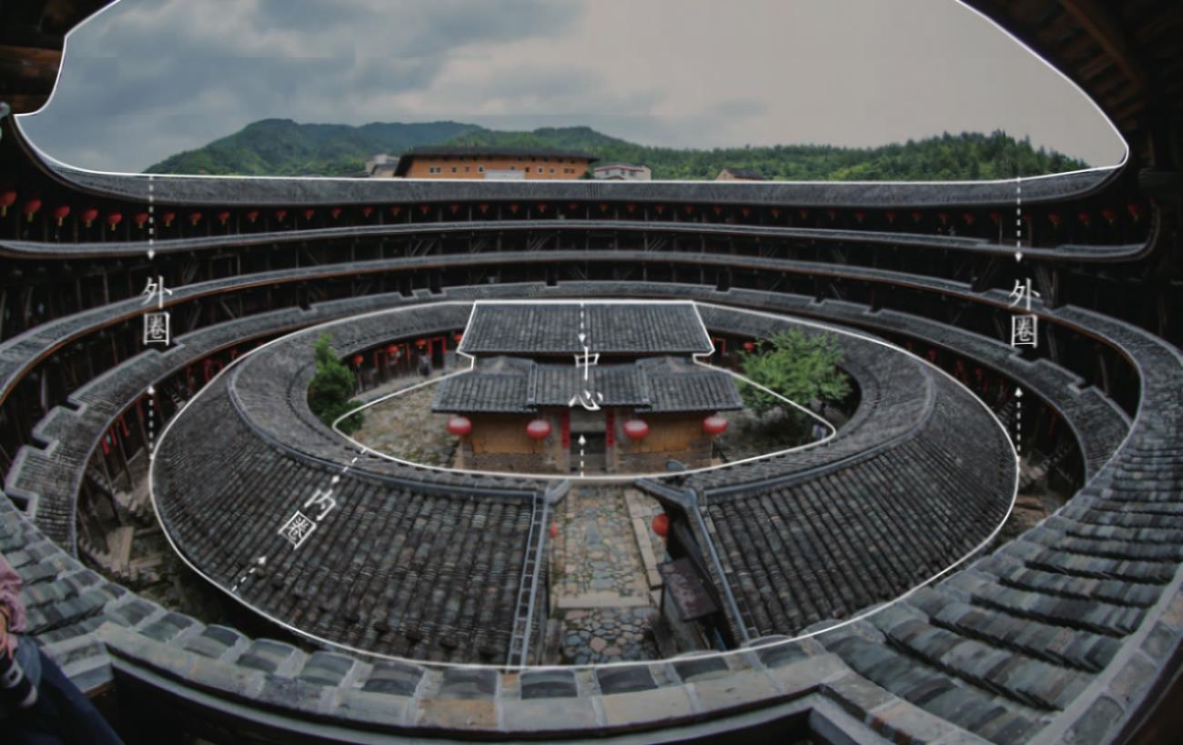外墙抵御了外忧,但关上门后的生活也不简单。为了妥当安排数百人的饮食起居,族长和楼主作为土楼的总设计师必须合理规划楼内的空间布局。他们把依附在外墙上的建筑圈定义为外圈,内部独立的建筑称为内圈,而中央区域则保留为公共空间。