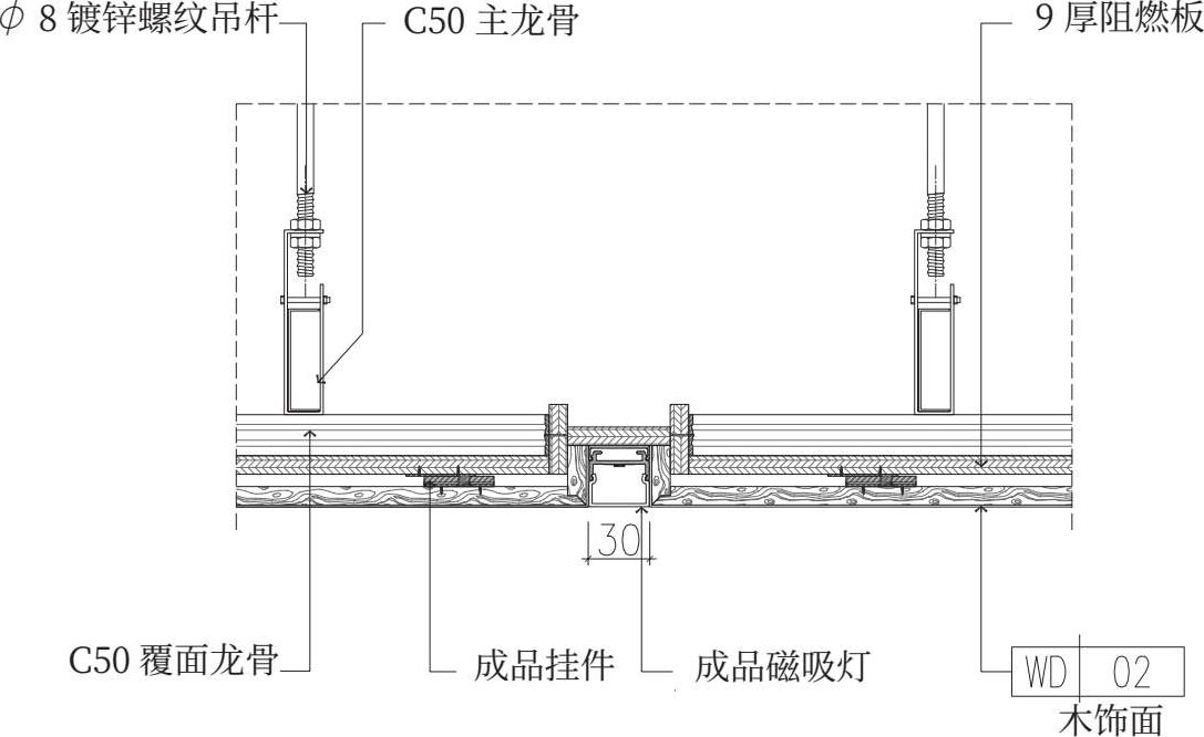 在吊顶施工的同时,需要备好磁吸灯轨道,轨道与夹板或龙骨通过螺丝固定,然后通过固定件挂上木饰面。 r17C+3TiLsikdw5++1I5haGJG3UGUdy7pqTGexZLD5oKMzkuXP70VZZCrcO+/FX1
