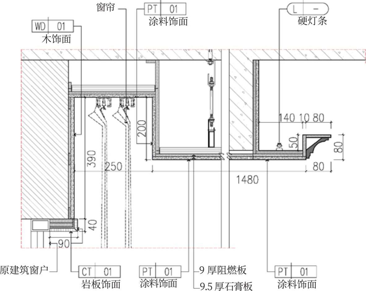 先做吊顶造型,定制石膏线条,再做墙面木饰面、窗边石材收口(窗帘盒顶部需要留夹板基层,固定窗帘)。 zdFqwcT2QgLxYD3tX3dzfjQ2yMQOD5JpiS/QGCgynRRT0T6YK1SVWp/adChtmxvA