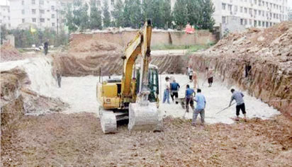 地基处理(灰土换填) ——铺设灰土前应验槽,按先深后浅顺序施工