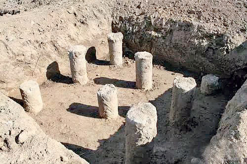 基础的施工顺序一般为:土方开挖→地基处理(一般多为灰土换填)→磉墩及拦土的砌筑→回填土。