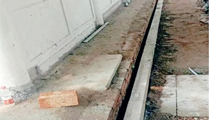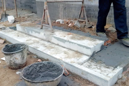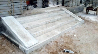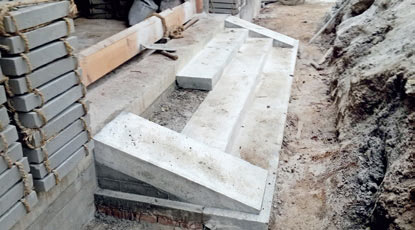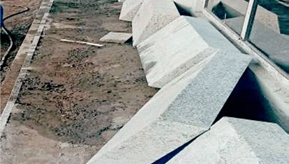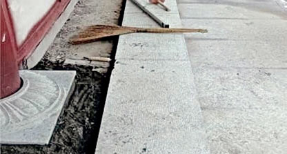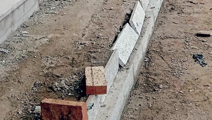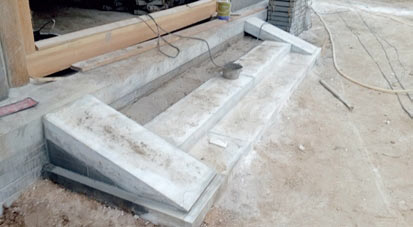 ❼ 垂带石铺装 ——象眼石安装完后进行灌浆,使灰浆充满空隙,待其凝固,最后再铺垂带石