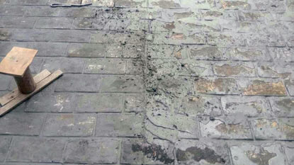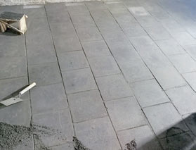 ❷ 揭趟浇浆 ——将墁好的砖从第一块砖揭起,在砖底通刮一道素水泥浆,淌白地面墁地可不揭
