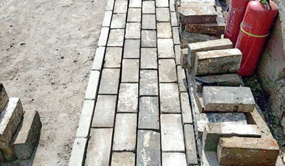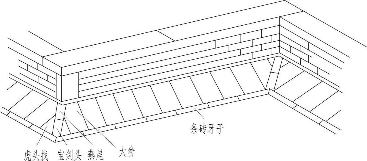 ❷ 栽牙子 ——即最外侧一排立砌的条砖,称为牙子