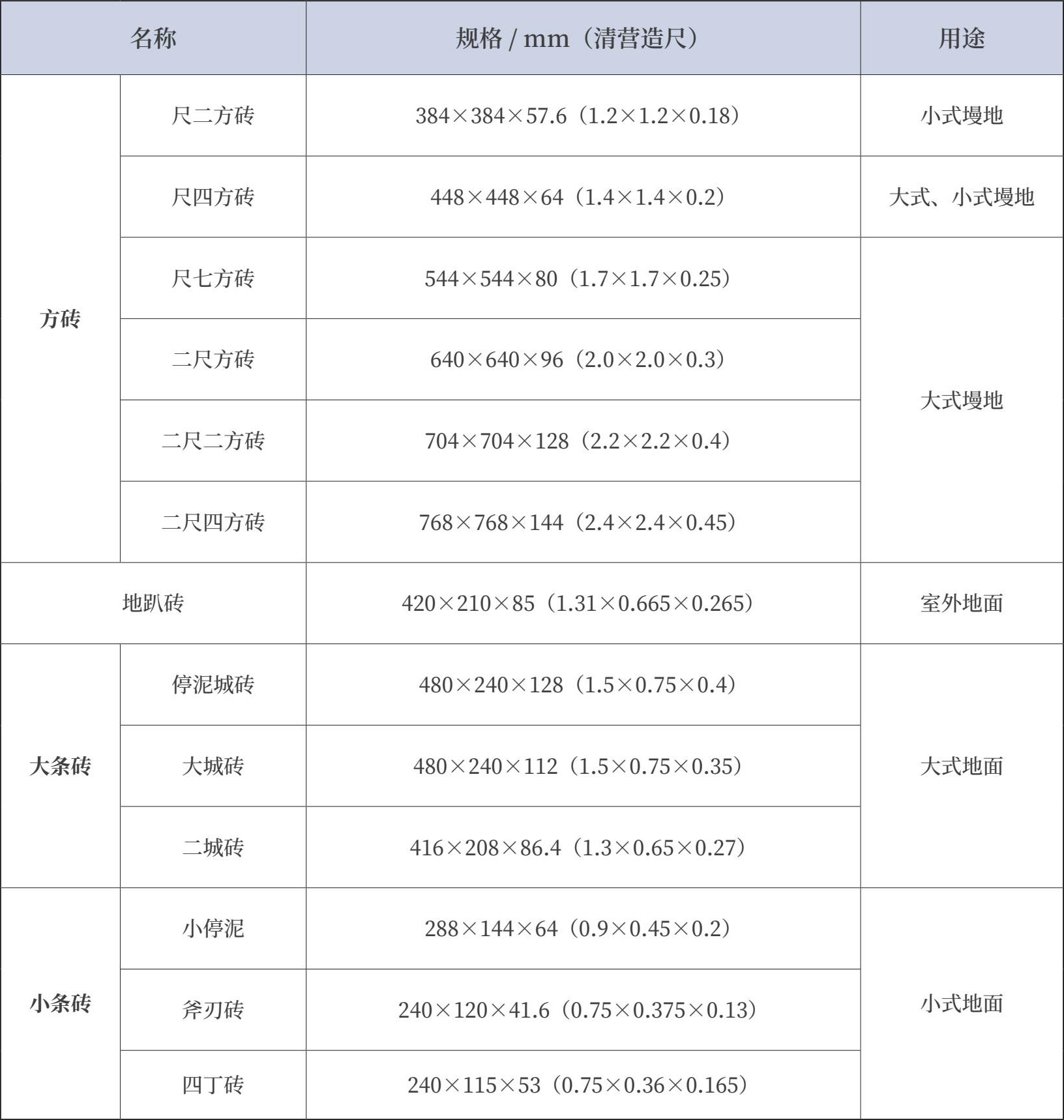现行古建地面用砖、传统灰浆配比及制作要点见表 1-1、表 1-2。