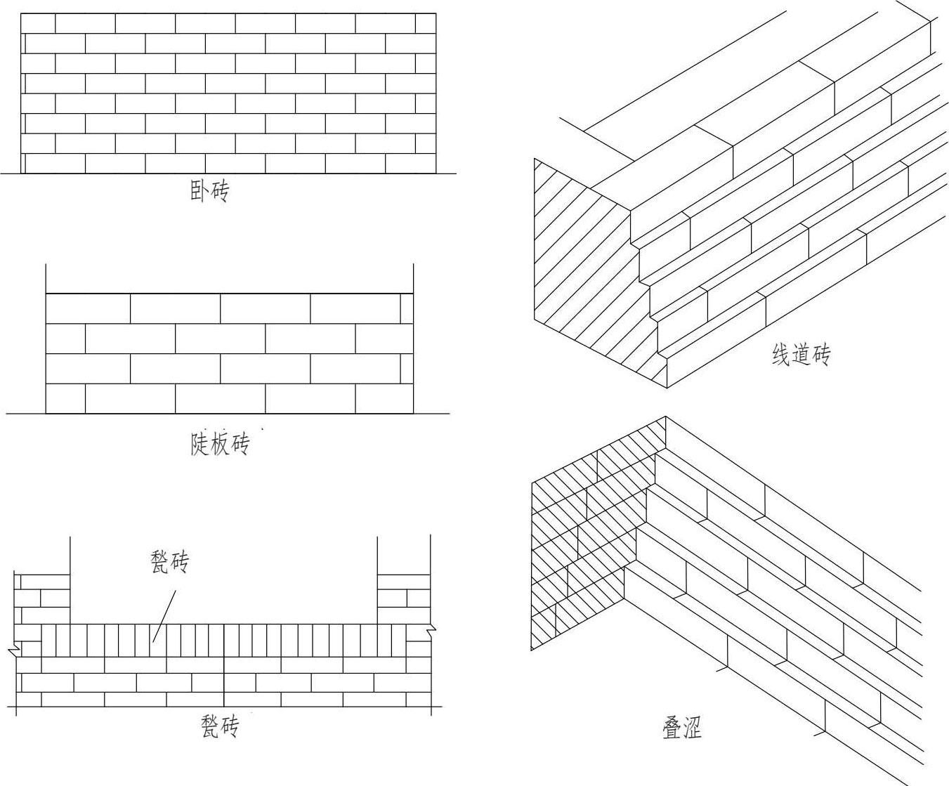 砖的摆放方式有卧砖、陡板砖、甃(zhòu)砖、线道砖、叠涩等(图 2-3)。