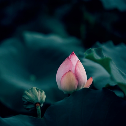 古人称未开的荷花为菡萏,即花苞。明代李时珍《本草纲目》(金陵本)说道:“芙蕖,总名也,别名芙蓉,江东人呼为荷……其花未发为菡萏,已发为芙蕖。”《康熙字典》也称“菡,犹含也,未吐之意”。提到菡萏,最为人熟知的或许就是南唐中主李璟的那首词了:“菡萏香销翠叶残,西风愁起绿波间。还与韶光共憔悴,不堪看。”秋风一过,荷瓣凋零,荷叶残破,天地间一片萧瑟之气,韶光匆匆,人与花老。