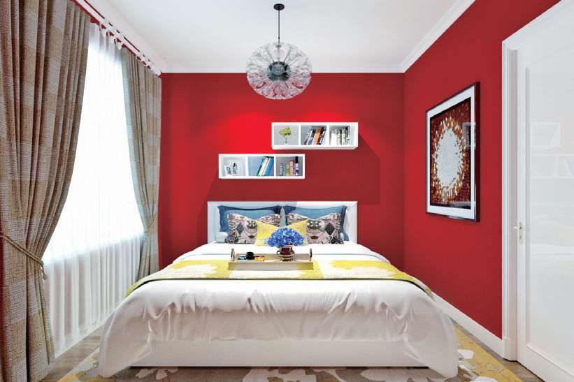 我们虽然在家里待客、办公、学习,但家本质上是让我们放松和休息的场所,而大面积的高饱和度颜色会让人兴奋、紧张、激动。想象一下,把卧室的墙面全部刷成鲜红色,会让人晚上难以入睡。如果是以红色作为小面积的点缀色,比如你在床头放一个小小的红色摆件,就没有问题,或者给红色加上一定的灰度,变成浅浅的红色,也不会影响我们的正常休息。