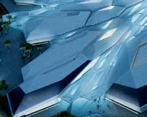 OVI照明设计事务所遇到的困难可谓千奇百怪。位于辛辛那提由扎哈·哈迪德设计的罗森塔尔当代艺术中心项目,吉恩和恩里克借用波音公司在飞机制造中用到的高科技固定螺栓,保证更换灯泡时灯具整体不会产生位移。同样是扎哈·哈迪德的项目,位于沙特阿拉伯沙漠的阿卜杜拉国王石油研究中心,夜晚发出夺目的光芒,仿佛在印证着这座建筑的使命——赞美化石燃料给人类带来的福祉。这个建筑群的照明设计和建筑语汇融合得如此完美,很难将彼此区分开来。在图书馆和会议中心的墙壁和天花板上,波浪形的雕塑碎片和明亮的灯光线条完美融合。祷告室内精心的照明设计让房间保持一定程度的幽暗,让人对宗教心生敬畏,置身其中,参观者不由得联想起20世纪20年代的“德国表现主义”。