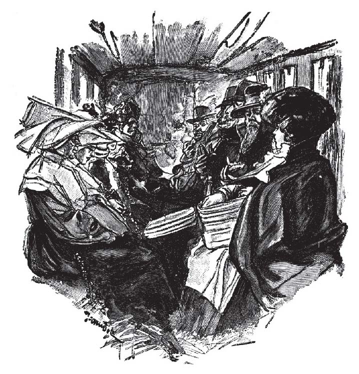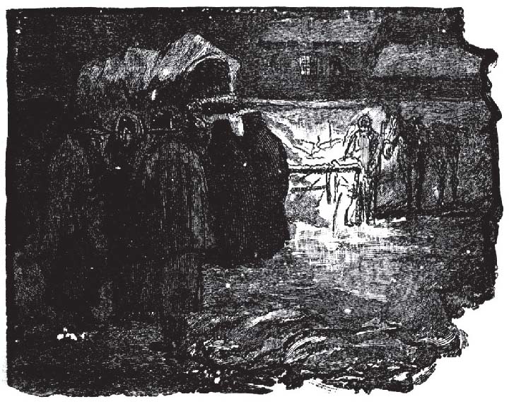 这以前他们大概没想到上车,一经提醒便连忙向马车拥去。那三位男士先把各自的妻子安顿在车厢尽里头,随后自己也上了车;接着,几个模糊的身影和戴面纱的人,也在剩下的位子上就座,彼此间一句话也没说。