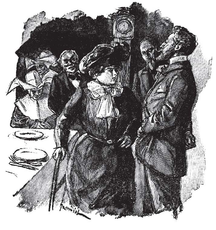 最后还是伯爵解决了问题。他侧身面向怯生生的胖姑娘,摆着他那副高贵的绅士派头,说:“我们就感激地领情了,夫人。”