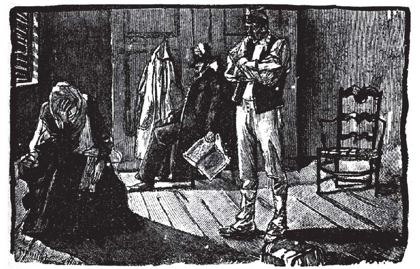 每经过一个靠近大路的农庄,男人们就跑去找吃的,但是他们连一块面包也没有弄到;深怀疑惧的农民怕大兵抢他们,已经把储备的食品都藏了起来。因为那些大兵没有吃的,见到什么吃的都强取豪夺。