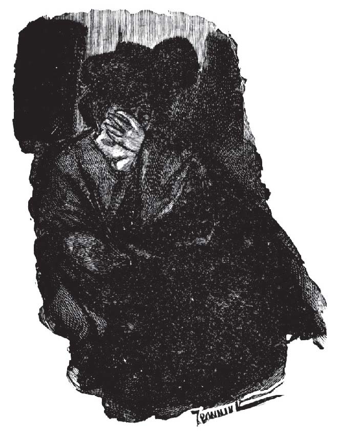 她此刻蜷缩在毛皮大衣里,坐在丈夫对面,相形之下愈显玲珑﹑娇憨﹑美丽。她正用颓丧的目光看着车厢里的凄苦情景。