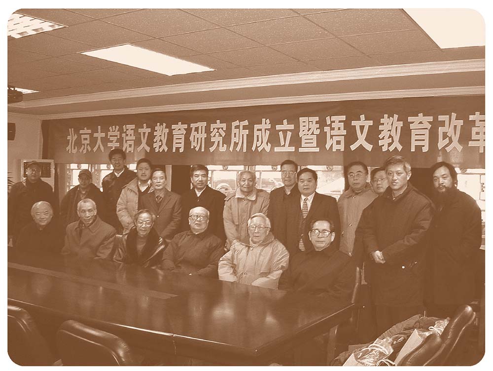 三是成立北京大学语文教育研究所。2003年12月25日举行成立座谈会,在五院一楼会议室,挂了一个条幅,有二十多人参加,其中包括林焘、王宁、巢宗祺、蒋绍愚、钱理群、顾之川等有名的学者,而聘请为研究所顾问和研究员的,还有袁行霈、徐中玉和刘中树等先生。