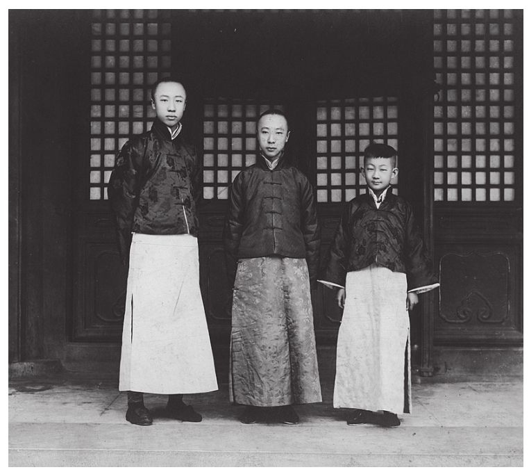 溥仪(左)、溥杰(中,溥仪胞弟)与润麒(婉容之弟)