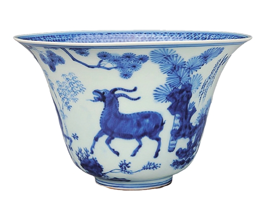 嘉靖、隆庆、万历年间,青花多用“回青”。回青是一种进口青料,内含铜和钴的金属氧化物,使用回青制作的青花瓷蓝中泛紫,鲜艳明丽,独具风格。