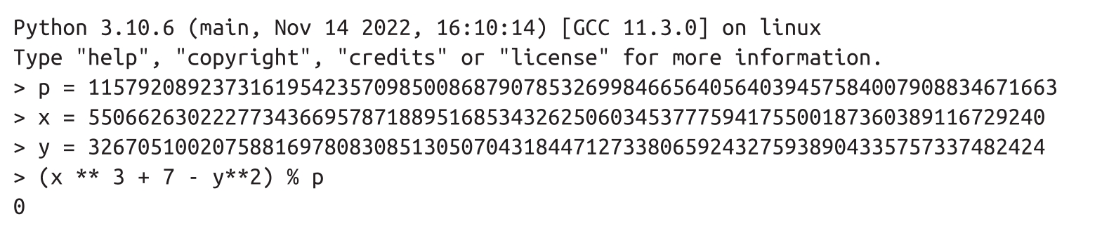 示例4-1:使用Python验证这个点是否在椭圆曲线上