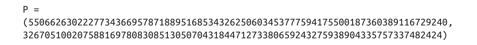 例如,以下是一个在secp256k1曲线上的点P,其坐标为( x , y ):