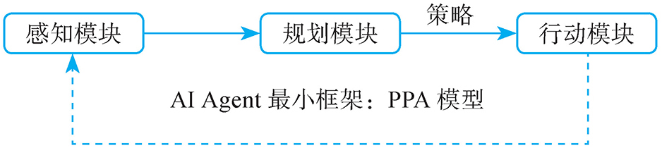 我们以智能电子邮件分类系统为例,介绍AI Agent最小框架,即包括感知(Perception)模块、规划(Planning)模块与行动(Action)模块的PPA模型,如图1-1所示。