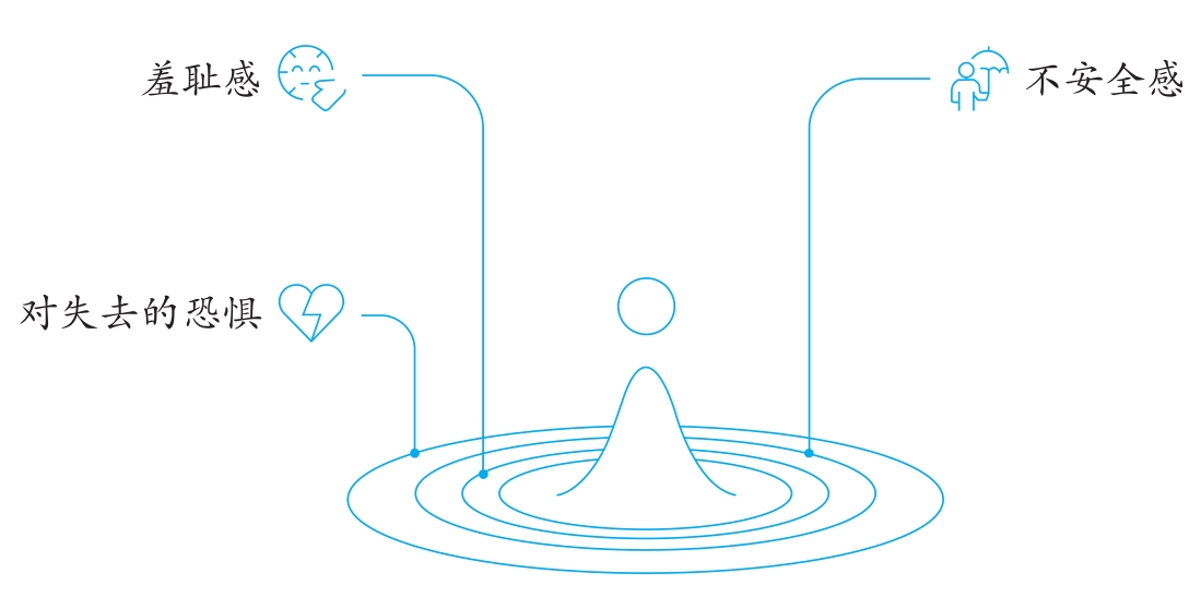 每个人的触发点都是不同的,但它们通常与图1-3中的几种情绪密切相关:羞耻感、不安全感和对失去的恐惧。
