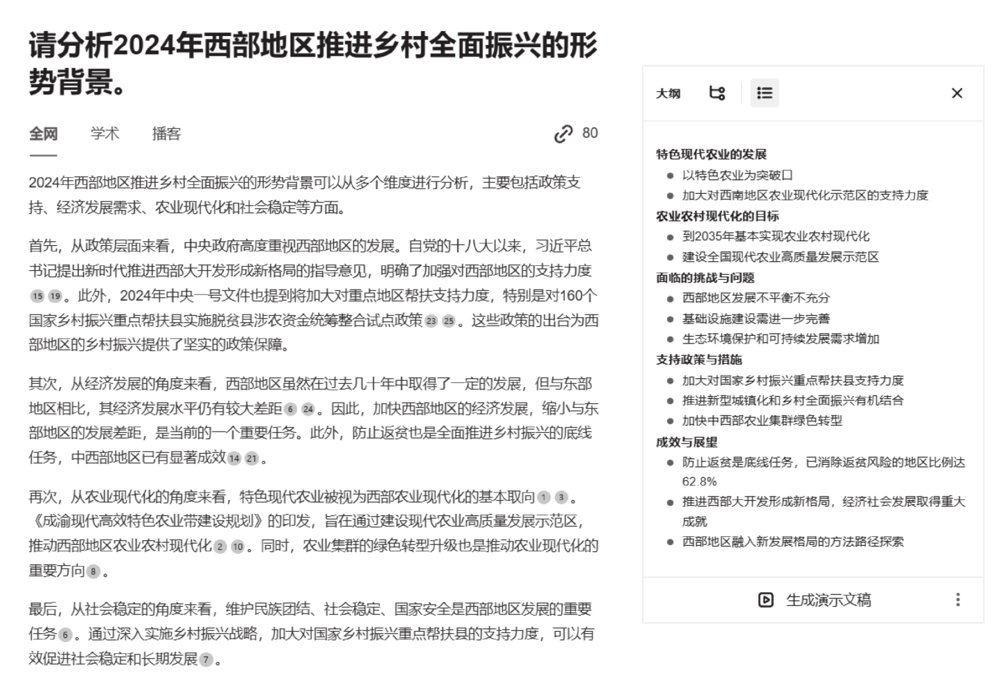 秘塔AI搜索输出示例2,如图1-7所示(部分截图)。
