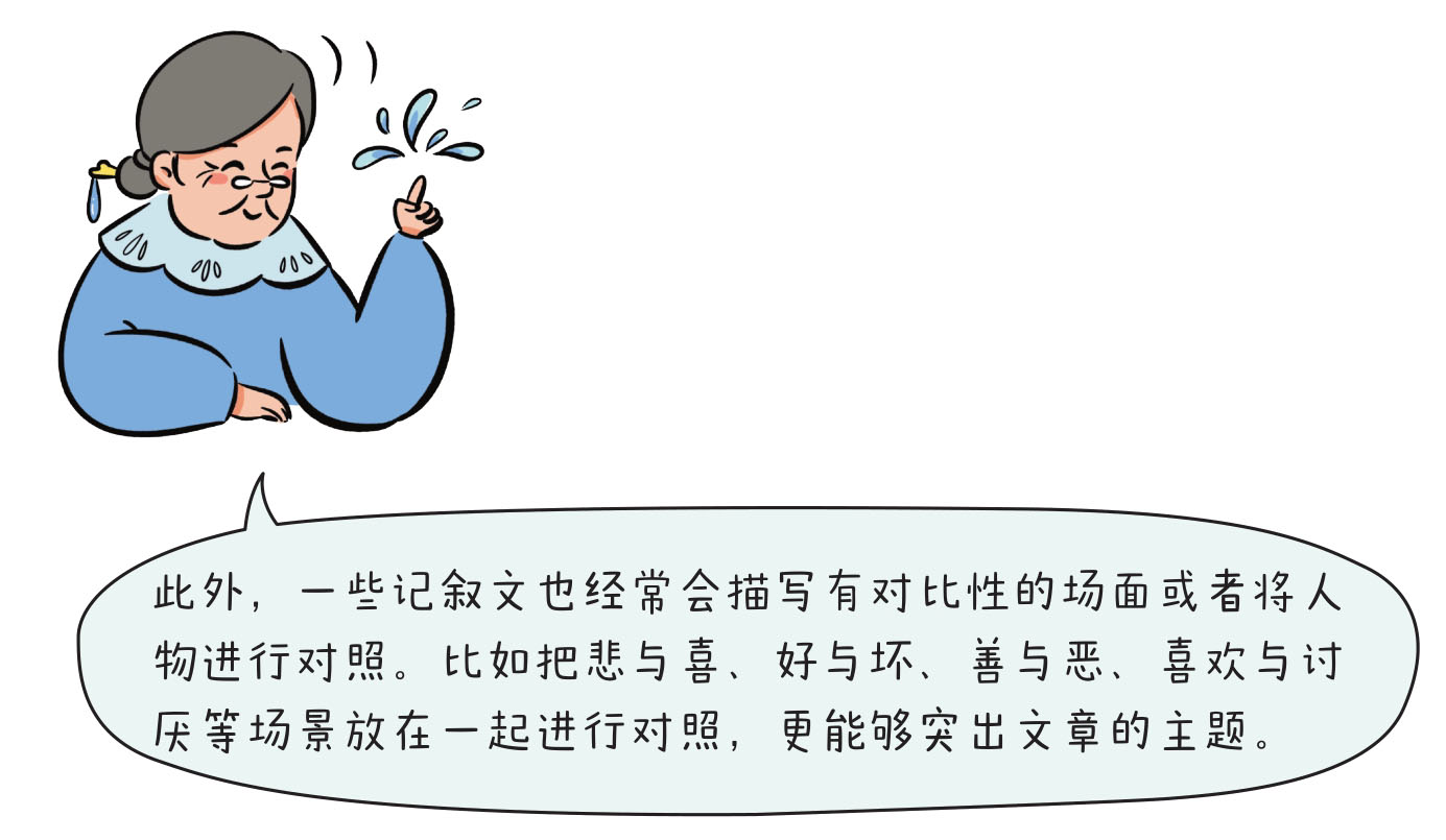 乐嘻嘻突然想到之前读过的那篇小古文——《王戎不取道旁李》,诸小儿看到“道边李树多子折枝”,便“竞走取之”,唯独王戎“不动”。诸小儿的“动”与王戎的“静”,不就是对照吗?