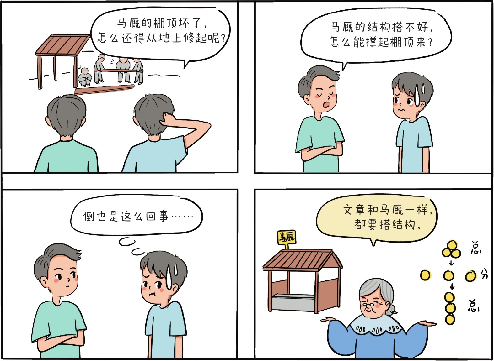 在写作文时,小朋友们似乎还没有考虑过结构,但在做阅读理解时经常会碰到这样的题目: