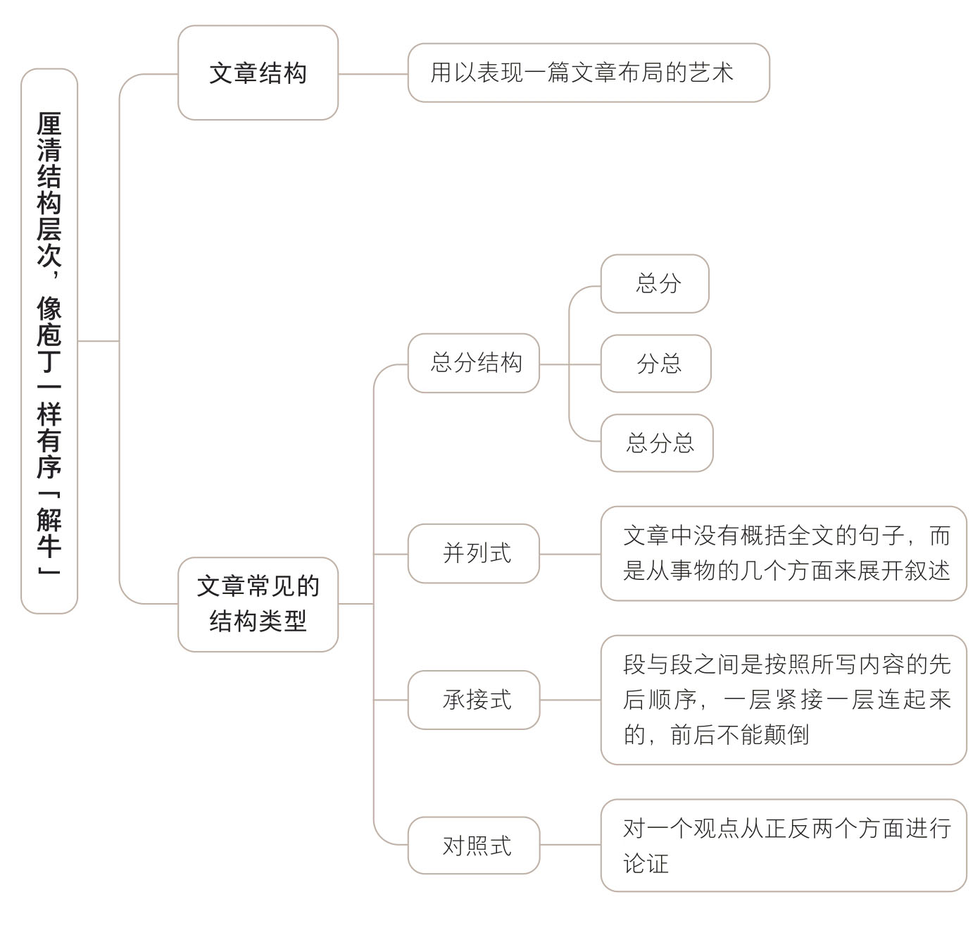 后来借用到写作中,用以表现一篇文章布局的艺术。如果说主旨是文章的灵魂,材料是文章的血肉,那么,结构就是文章的骨骼。