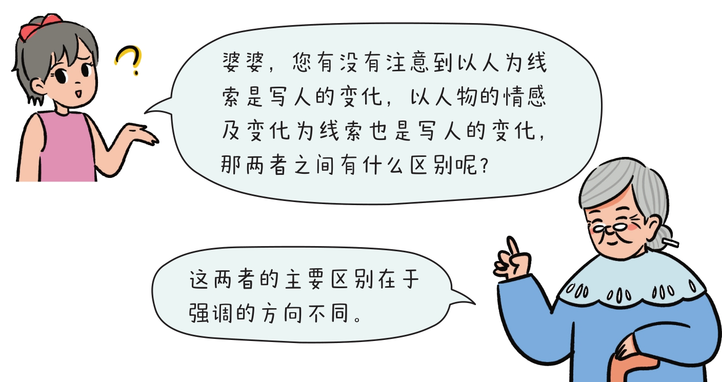 “婆婆,我发现一个问题:按写作内容来讲,《母鸡》是写动物的,应该属于以‘物’为线索吧!但为什么又成了以‘感情变化’为线索呢?”乐哈哈不明白。