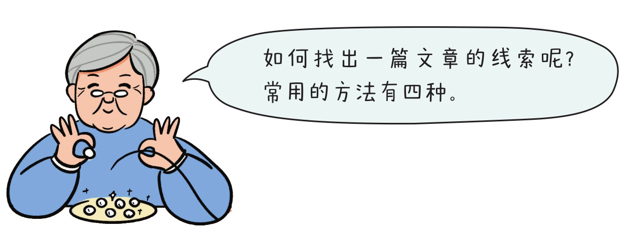 很多时候,文章的标题就包含了文章的线索,比如《奶奶的老花镜》一文,“老花镜”就是文章线索。