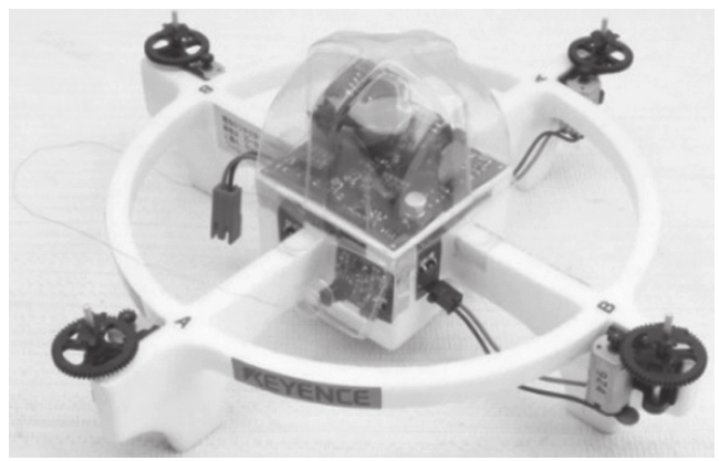 1989年,日本Keyence推出的遥控式四轴无人机“Gyro Saucer E-170”,如图1-29所示,是最早的室内无人机。随后Keyence又推出了“Gyro SaucerⅡE-570”,这一款迷你四轴飞行器,通过操纵旋翼实现对飞机姿态和方向的控制,并使用聚苯乙烯泡沫材料制作机身和旋翼,充满电可以实现3min的飞行续航。