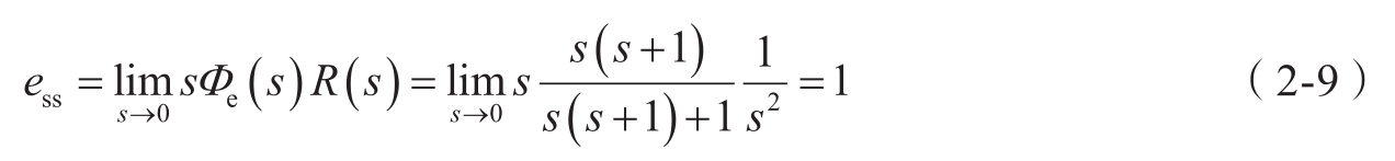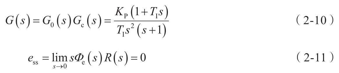 从系统的开环传递函数可见,随着PI控制器的引入,系统由原来的Ⅰ型提高到Ⅱ型。若系统的输入信号为斜坡信号 r ( t ) =t ,在无PI控制器情况下,系统的稳态误差为1;而接入PI控制器后,系统的稳态误差为0。Ⅰ型系统采用PI控制器后,可以消除系统对斜坡输入信号的稳态误差,控制准确度大为改善。