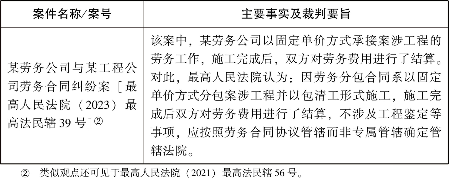 此外,如果讼争劳务分包合同本身不涉及工程鉴定等事项,为了审理便利,也可以不实施专属管辖。