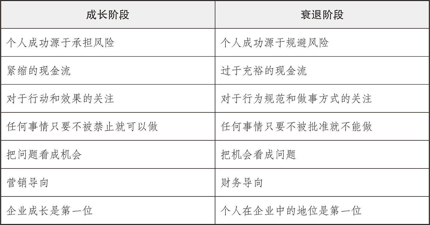 企业在成长和衰退阶段也有着各自特定的行为模式,见表1-1。