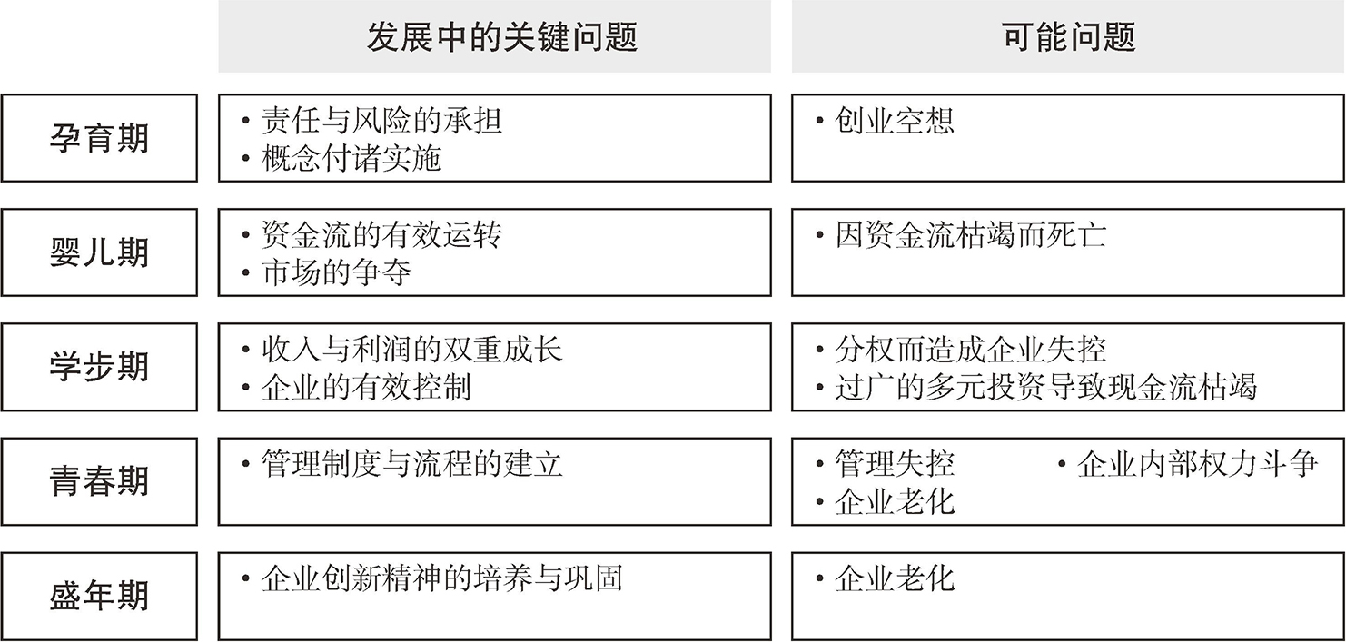图1-4 企业不同发展阶段的问题