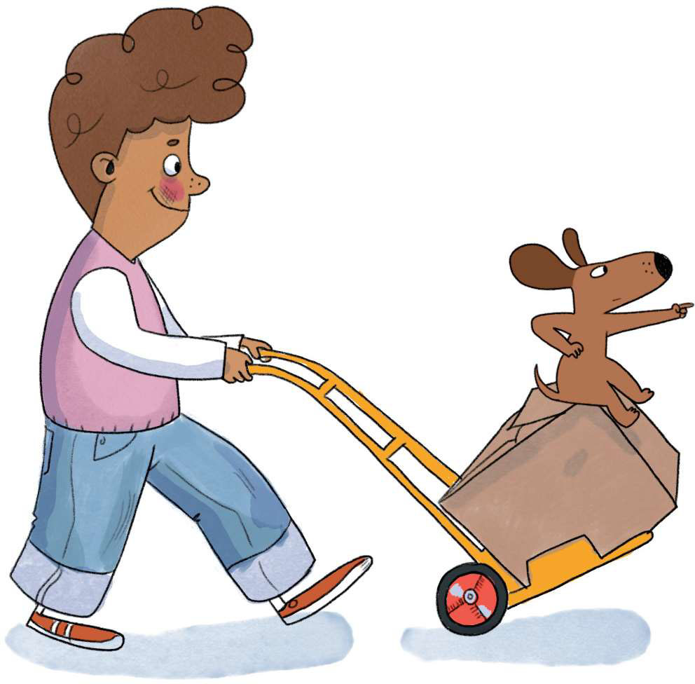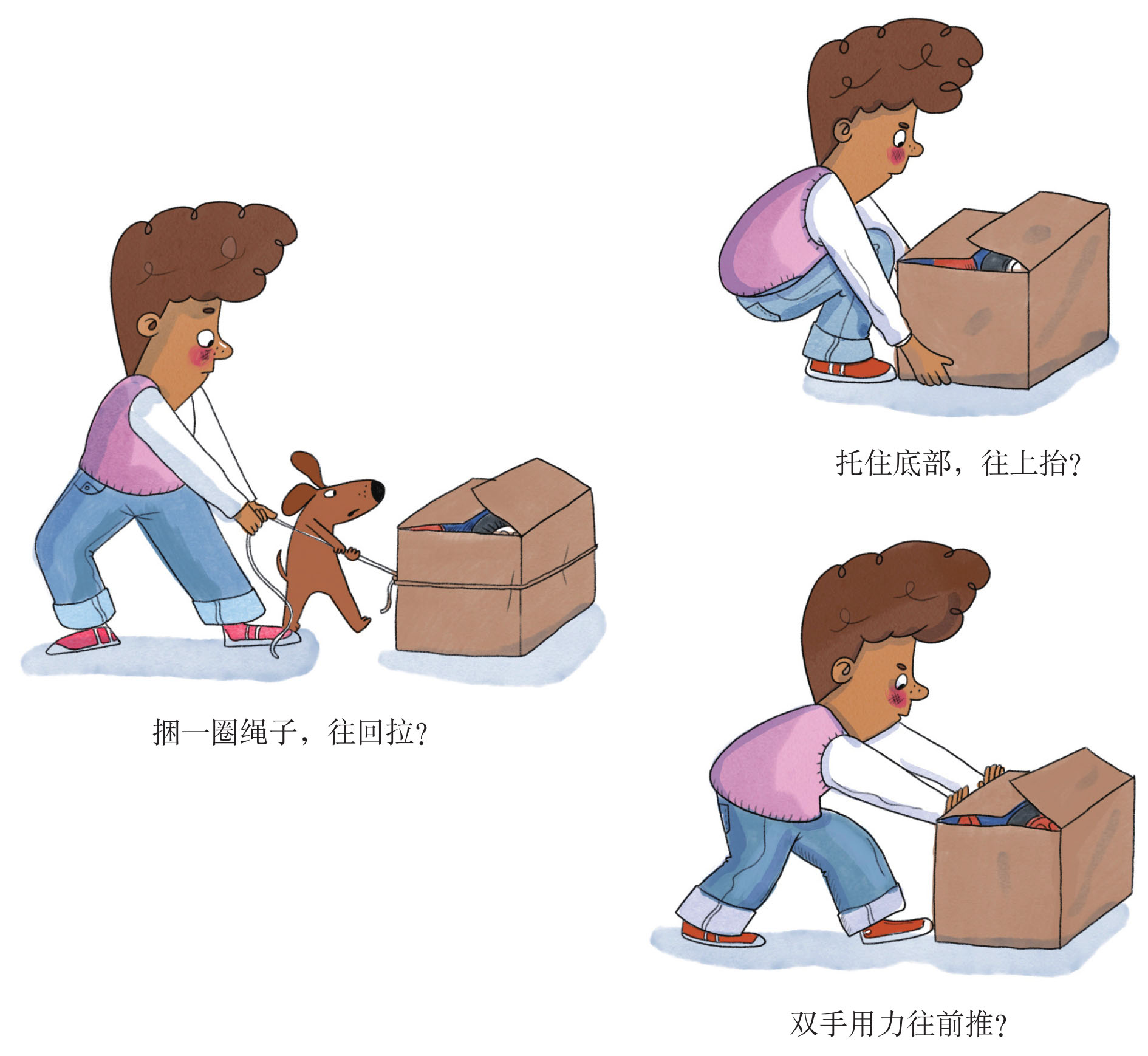 手推车就是一种机械。有了它,你就不用吭哧吭哧抬着、拉着或推着箱子走了。