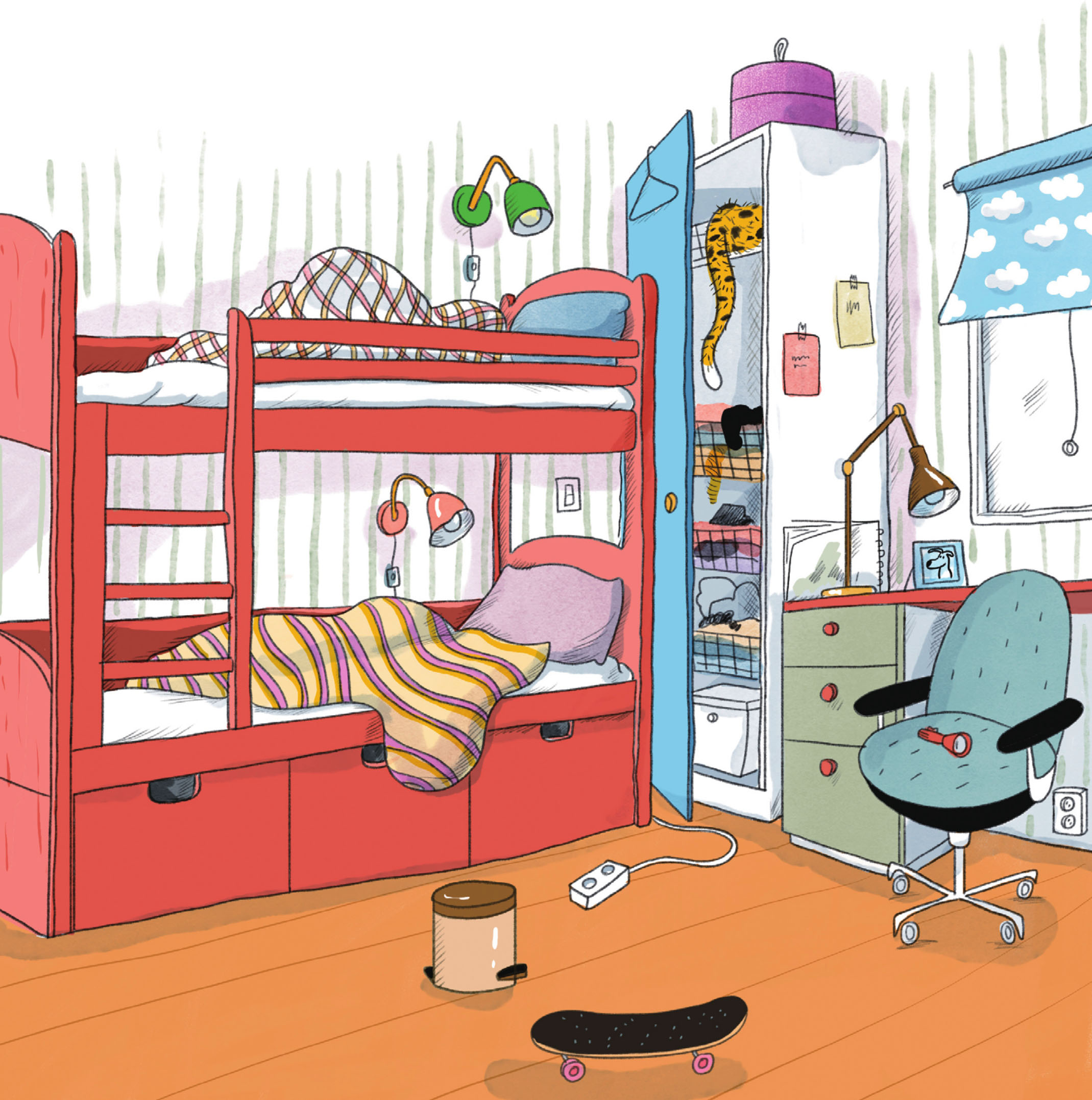 在她们的房间里,玛莎找到了台灯、卷帘、衣柜的门把手,还有脚踏式垃圾桶。