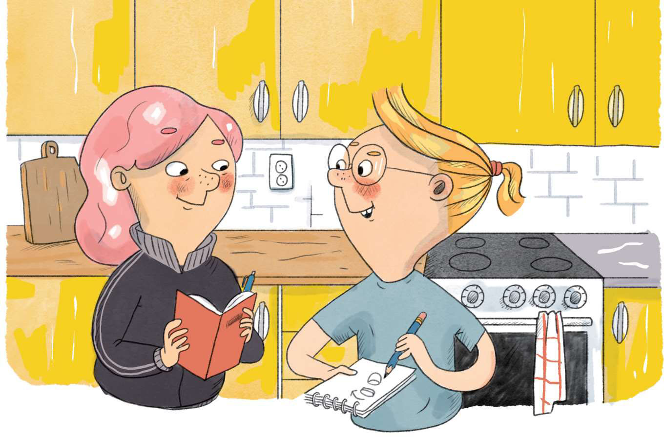 玛莎和蒂娜展开了一场探索之旅,想找一找家里有哪些科技发明。玛莎把找到的东西一一写在了笔记本上,蒂娜则把它们都画了出来。
