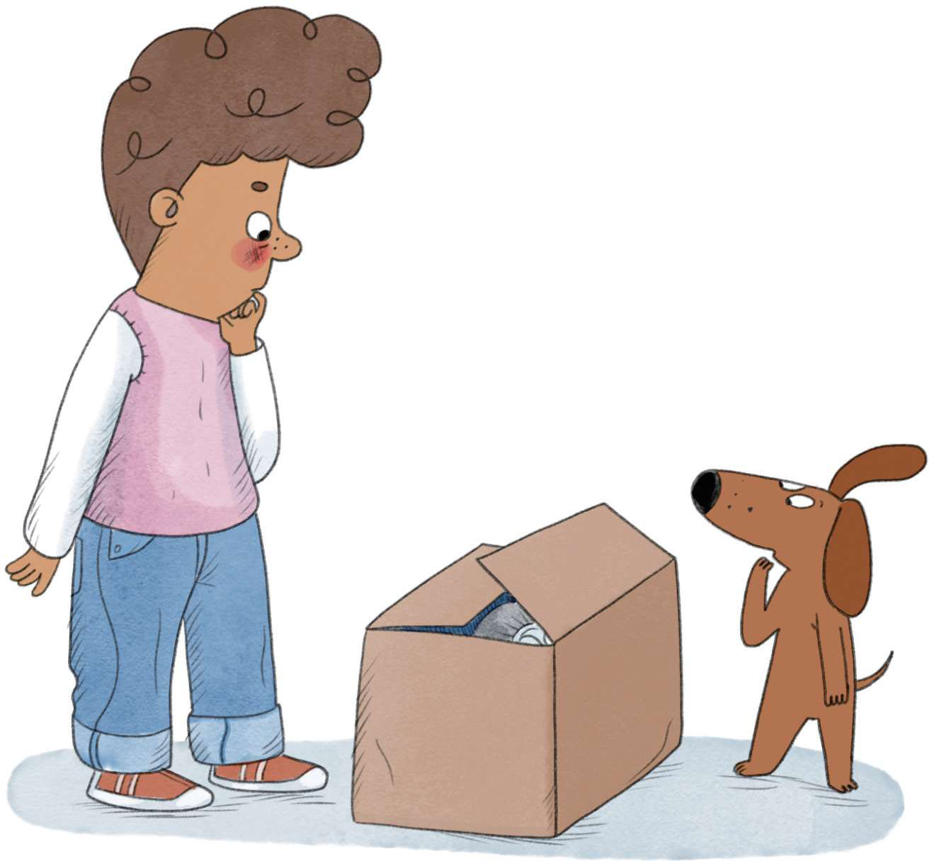 现在,阿德要搬运一只装着旧玩具的大纸箱。