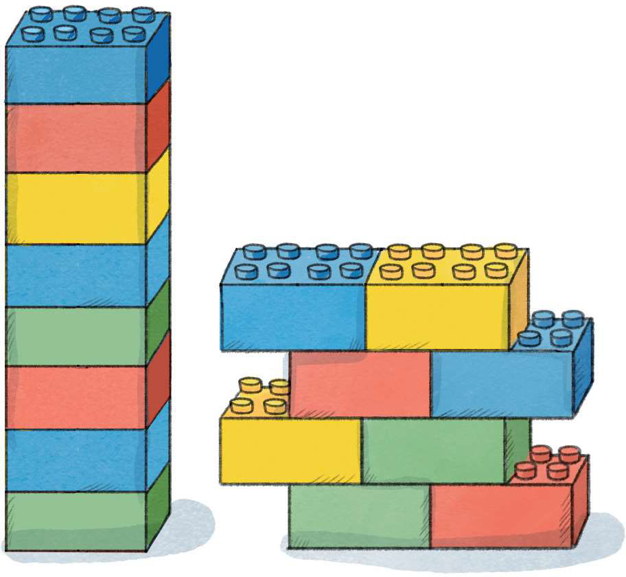 用同样数量、同样大小的积木块,分别拼搭两座塔。