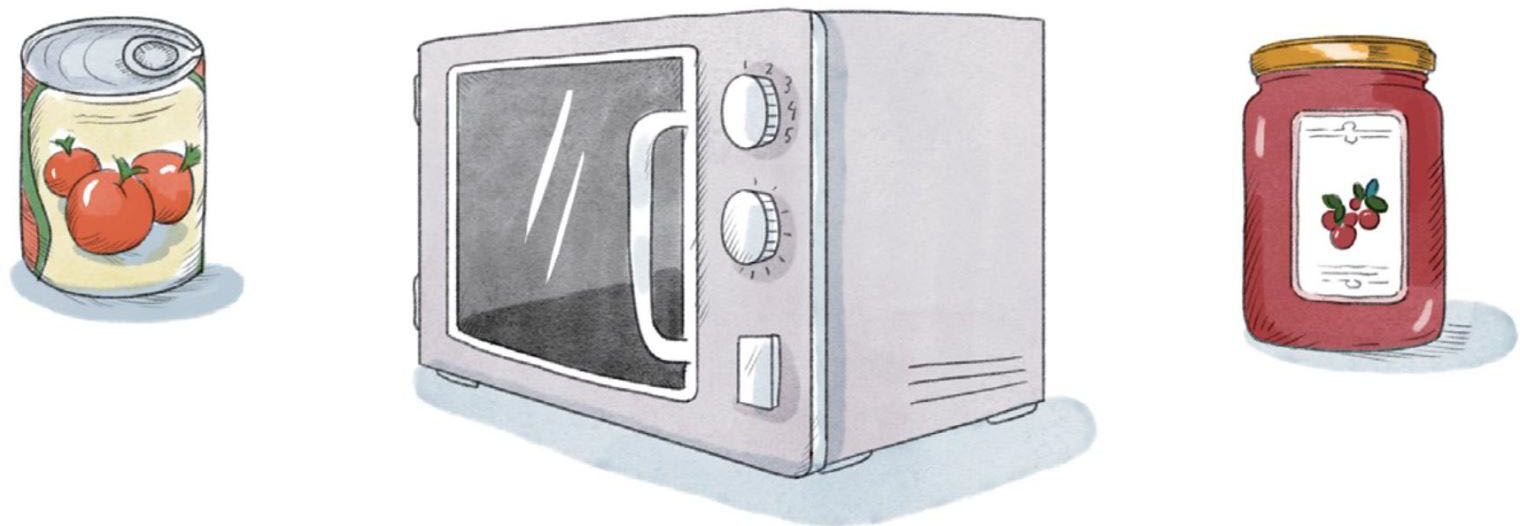 蒂娜走进厨房,找到了微波炉、燃气灶、勺子、碎番茄罐头和一管鱼子酱,这些也是科技。