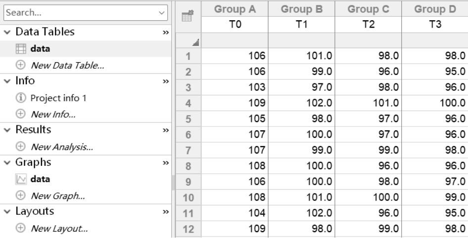 将原始数据录入GraphPad Prism,如图2.36所示。
