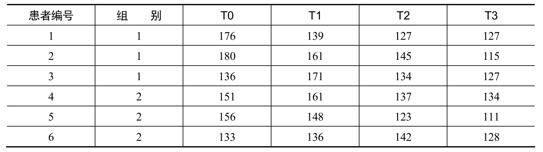 表2.6 不同治疗方法的患者收缩压变化情况(部分)