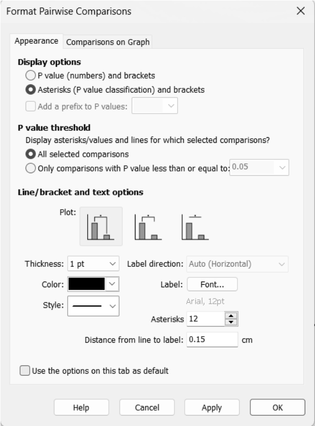 按钮,自动添加显著性标记。双击出现的显著性标记,弹出的对话框如图2.66所示,在其中可以对显著性标记的字体、颜色、图示进行个性化定制,详见2.1.3节,此处保持默认。