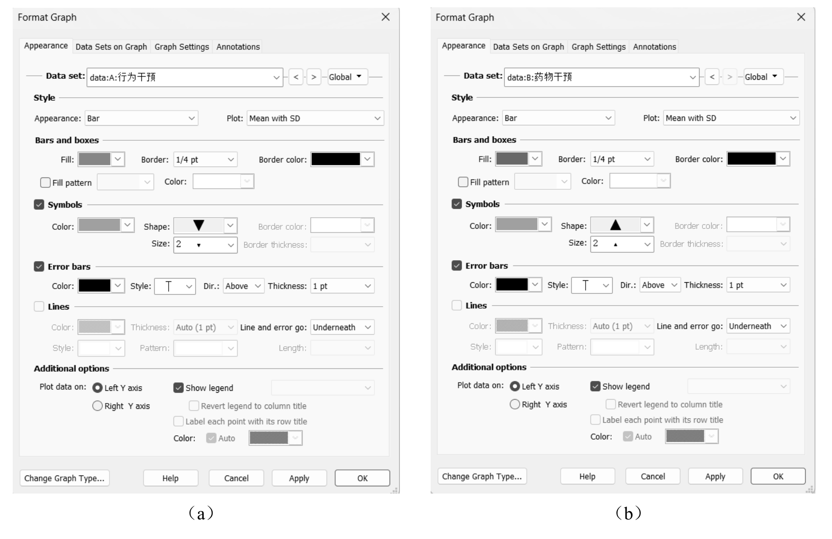 药物干预的柱状图设置方法与此相同,如图2.65(b)所示,不再重复罗列。